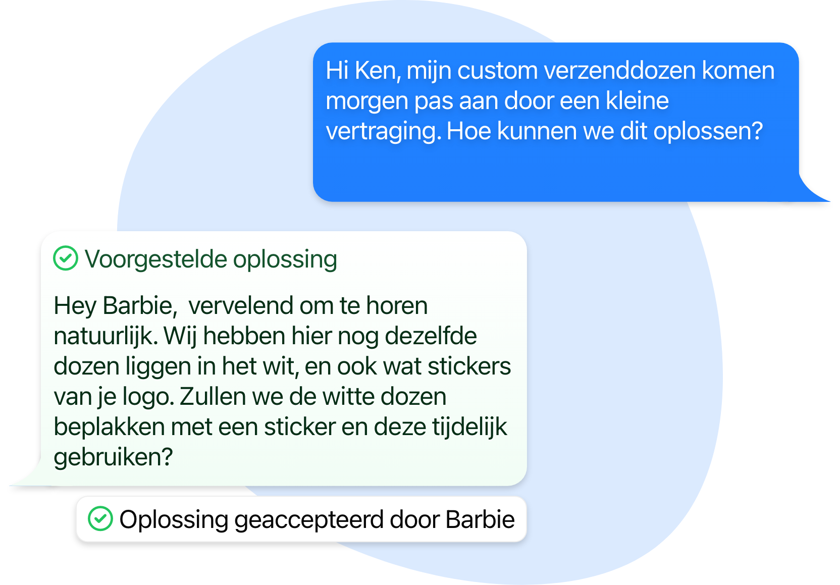 Geef een voorsteel om een vraagstuk op te lossen en de klant kan gemakkelijk aangeven of ze het er mee eens zijn of niet.